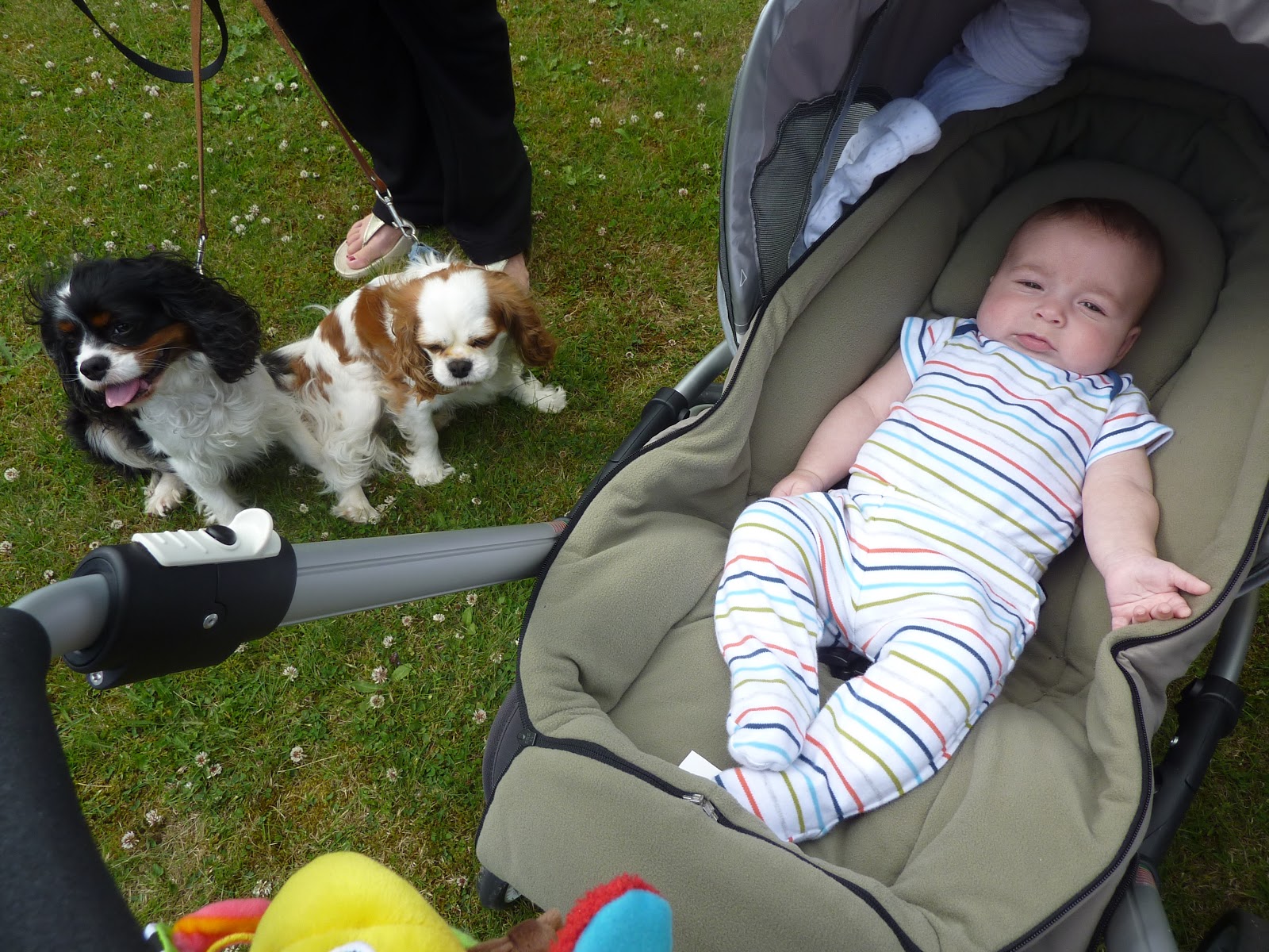 Toys I enjoy playing with : My lion and giraffe which dangle from my play mat and my friends hanging from my mobile.