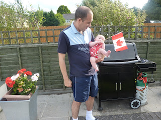 This was my first Canada Day! My Mommy dressed me up in my Canadian shirt for the occasion (and she too wore a Canadian t-shirt). I spent the day at Brent Cross with Mommy and Nana. I was especially good as that was my gift to Mommy for the day. Daddy then picked me up from the mall and we drove home in time for a BBQ. I didn't get the chance to taste any of the hamburgers but they sure did smell great. We ended up doing a little parade around the garden where I got the chance to pose for some pictures. Maybe next year I'll head into Trafalgar Square for the big celebration there.