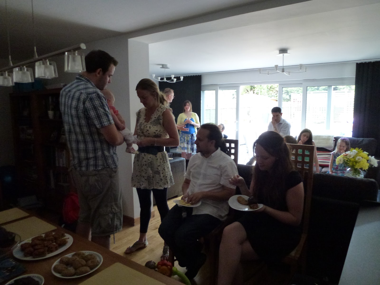 Afterwards, everyone came over to our house to taste some of Mommy's baking. It looked yummy. Shame I couldn't try any. Even with 7 babies in the house, there wasn't a lot of crying. It was a very good day seeing everybody.