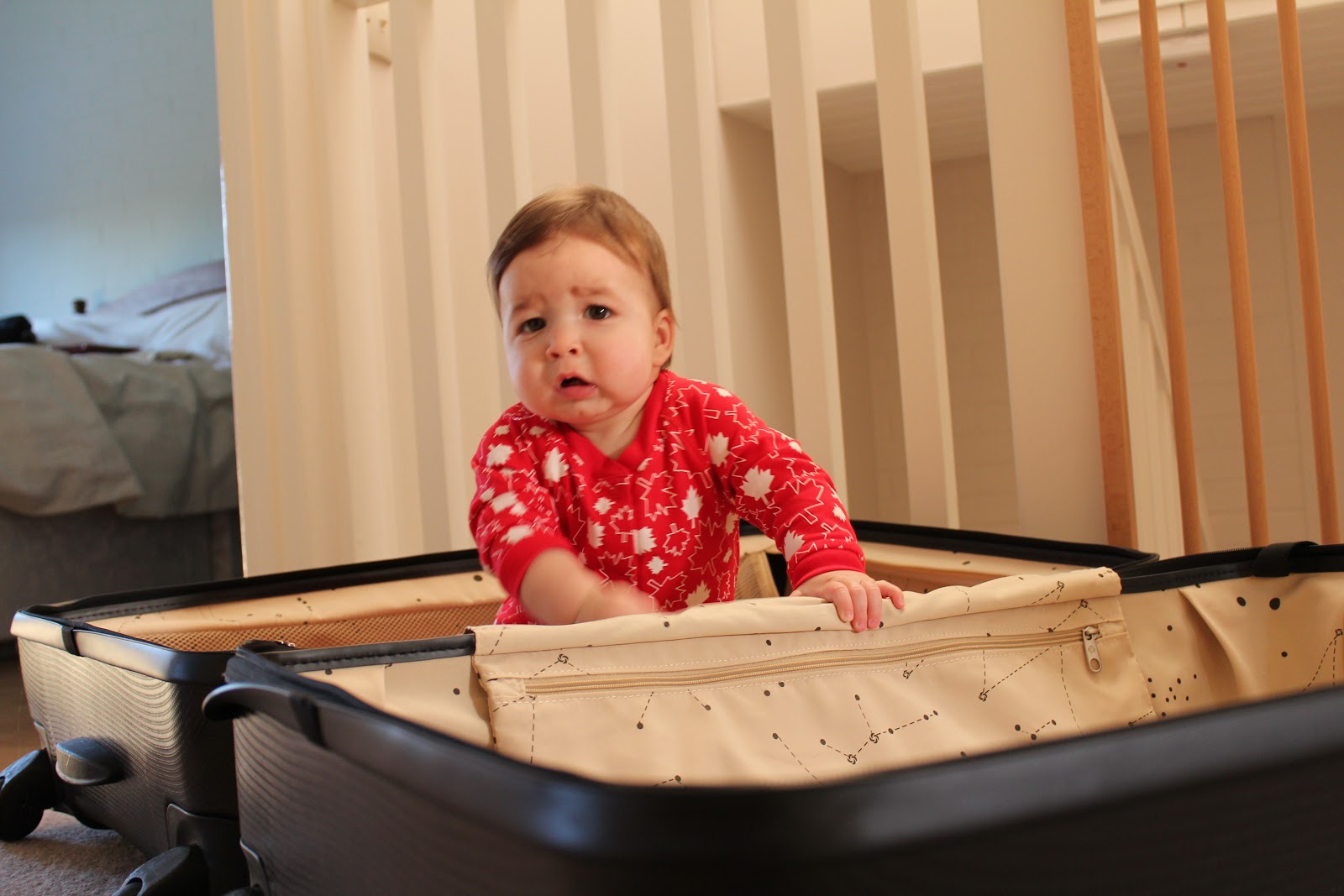 I've learnt how to crawl out of suitcases. It took me a while but I figured it out. Mommy figures I might as well practise hiding in suitcases as that may be a cheaper way to travel in years to come.
