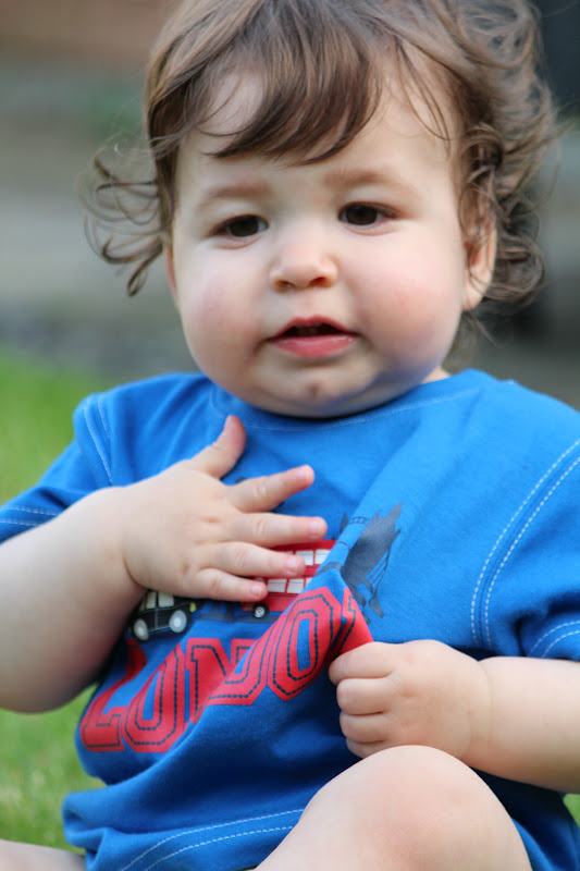 I love pointing to my different body parts and am obsessed with tummies at the moment. I like pointing to my tummy and then to Mommy's tummy where the baby is.