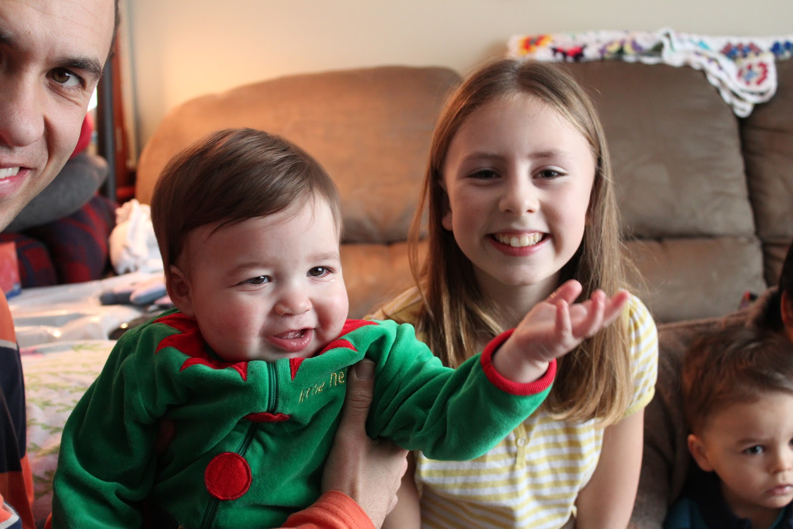 Dad says don't blame him--it was Mommy's idea to dress me up as one of Santa's elves.