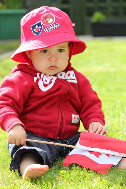 When we got home, Daddy started the BBQ (though I was just as happy eating only rice for dinner). Whilst I played on the grass, Mommy took tons of photos of me waving the Canadian flag. O Canada!