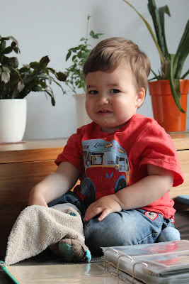 | I had to say bye-bye to Grandma and Grandpa J who spent the summer with me. Here I am enjoying looking through a photo album with my Doudou. |