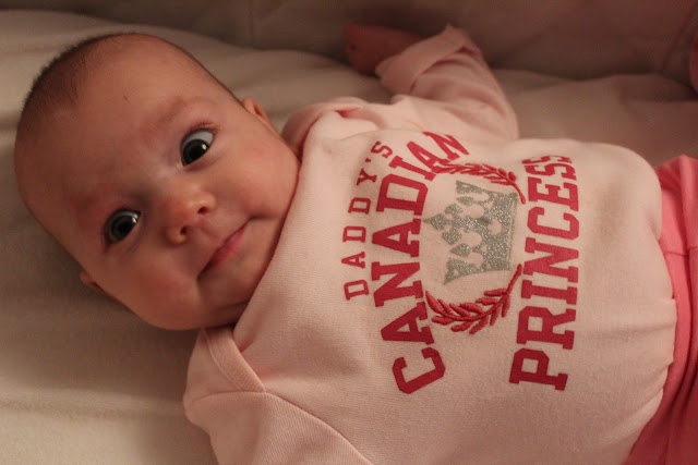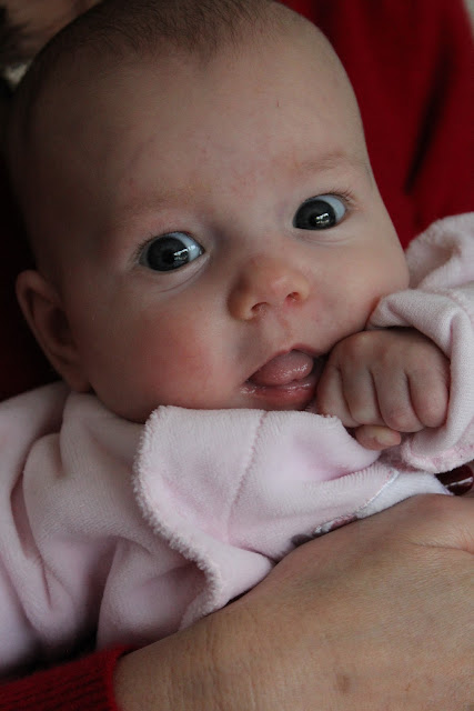 New Things I Can Do: I try to reach for my dangling toys off my chair; I'm staying awake longer and love staring at the pictures on the wall; I love looking at the magnets on the refrigerator. I've started to sleep more in my cot upstairs and I sleep the whole night upstairs now. I've also begun settling myself down to sleep without making any fuss and can go a night without crying!