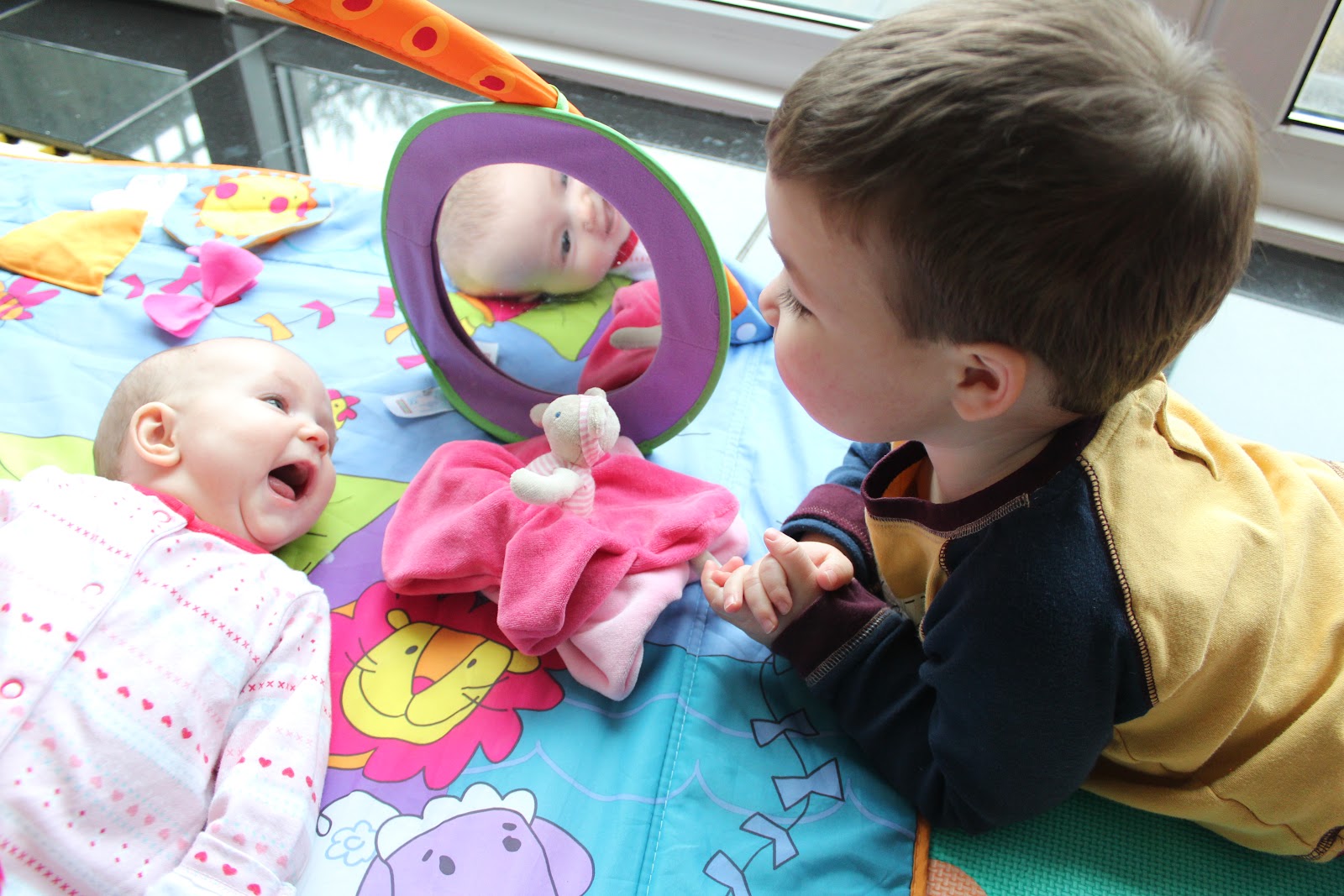 I Smile When...: people play with me on my mat; when kisses are blown on my tummy; when my brother Liam comes up close to my face.