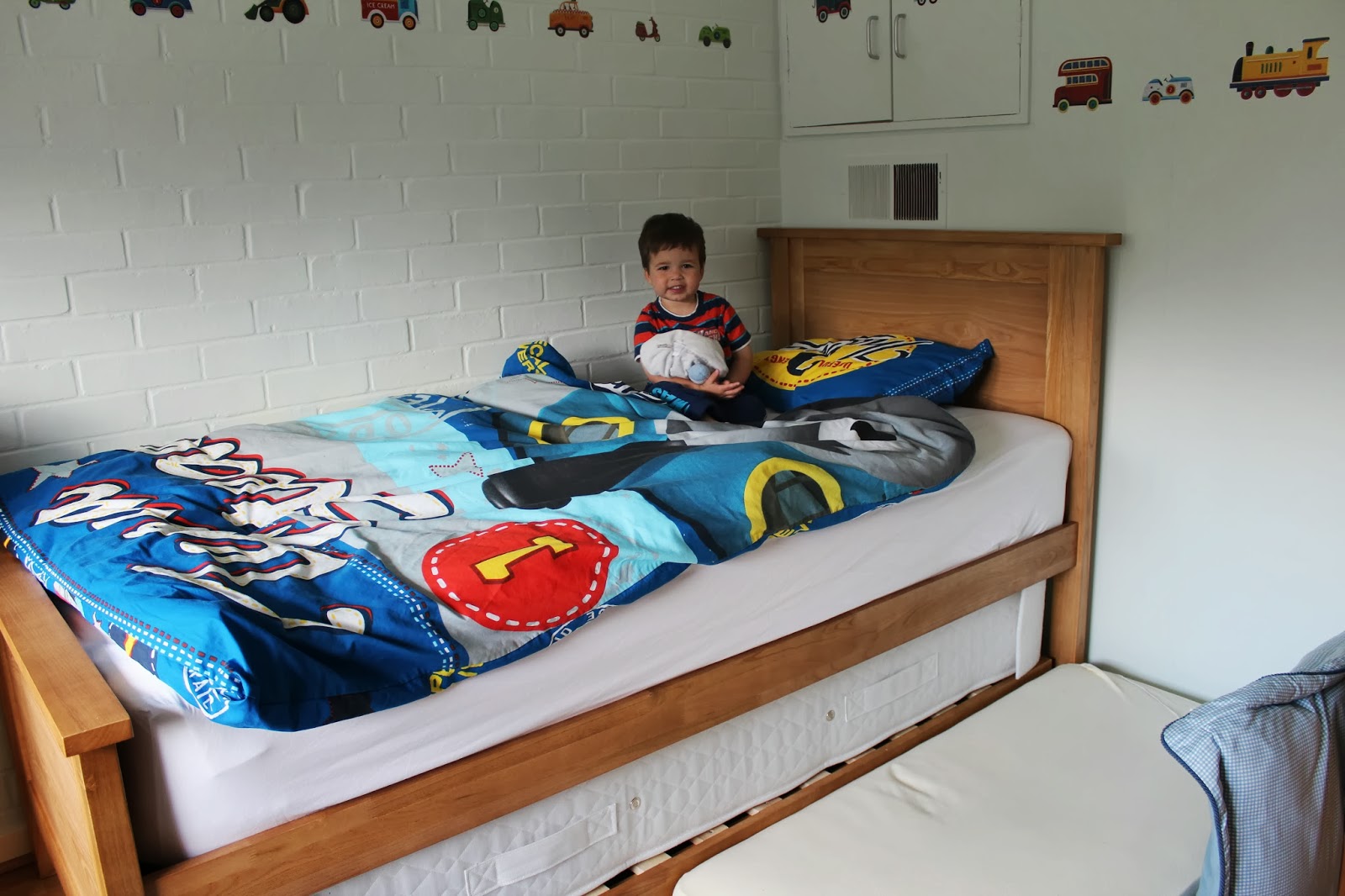New Things I Can Do: I can jump really high and especially like jumping on my trampoline. I now usually drink out of cups with no lids on them. I'm sleeping in a big boys bed where I can get in and out by myself. I can count to ten in French and English and almost count to 20 in French and English as well. I can recognise and sound out half the letters in the alphabet. I can throw underarm now and I know all the cricket umpire signals. I love roleplaying...especially pretending I'm going grocery shopping and running into Festus (my favourite cashier!). I'm great at holding hands with my parents and going on long walks. I love playing outside and hanging on the bars in the playground. I'm so proud now that I can climb to more and more places.