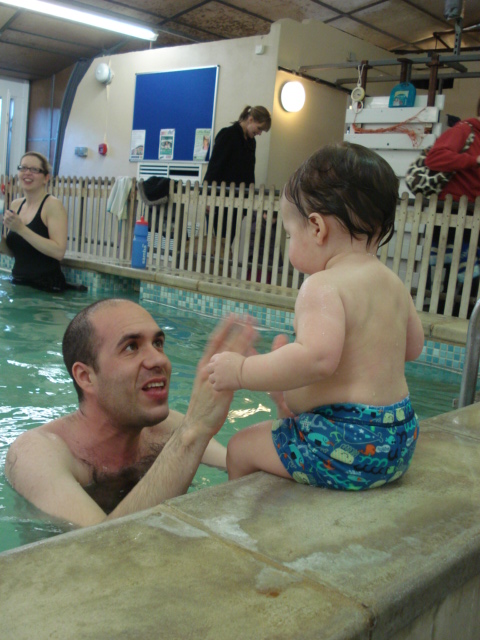 I love being in the water. I play with balls, swim forwards and backwards and my favourite, chasing ducks! I can even swim under the water with Daddy holding on to me. Daddy loves throwing me up in the air and catching me!