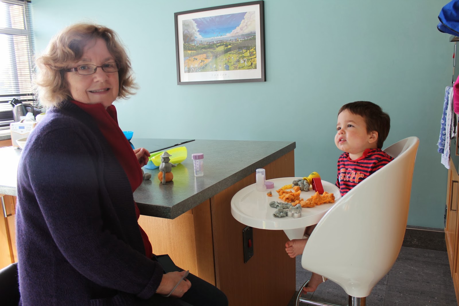 Grace: I had a nice nap whilst Sam pushed my buggy back and forth in the gymnasium!). But most of all, I loved going to the library where I listened to Sam read me tons of stories followed up by a weekly trip to the café. I've had to say good-bye to Sam but I still talk about her to Mommy....boy, was I excited to get a Christmas card in the mail from her!