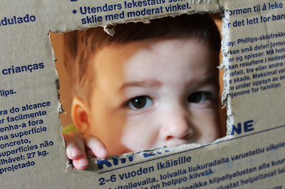 | Mom and I built a house out of a box---and I did lots of colouring on it. |